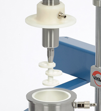 Ce broyeur attriteur discontinu vertical à micro-billes vertical APS adaptable sur les Disperseurs DISPERMAT® est un ingénieux système qui utilise la pression (air comprimé ou tout autre gaz sous pression) pour pousser le produit hors du bol de broyage via un tamis en fond de cuve, afin de séparer facilement les billes du produit et obtenir ainsi un très haut rendement. Le système APS s'adapte sur tous les DISPERMAT® et ajoute la fonction broyeur (attriteur) à votre disperseur. De plus, il est très simple à nettoyer. Le tamis est disponible en différentes tailles de fentes, et facilement interchangeable par l'opérateur, permettant d'utiliser différentes tailles de billes. En option, des versions céramique, résistant à l'abrasion, de ce broyeur attriteur discontinu vertical à micro-billes sont disponibles.