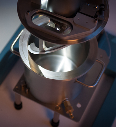 Disperseur de laboratoire et pilote sous vide DISPERMAT®VL disponible avec cuve simple ou double paroi de 1 à 60 litres, avec ou sans racle de bord de cuve. Les fonds des cuves intègrent une sonde Pt100 qui permet la mesure de la température produit même lors de l’utilisation de la racle.