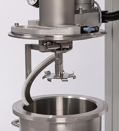 Le DISPERMAT® VL permet un ajustement de la hauteur de l'outil de dispersion électrique, même en cours d'utilisation sous vide.