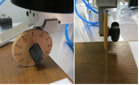 • Différents types de porte-outil disponibles pour les différents essais de rayure (rayure à l'ongle, rayure à la semelle de chaussure, rayure à la clef, rayure avec différentes pointes métalliques normalisées), essais aux chocs ou essais d'abrasion (abrasion semelle de chaussure ou autres), essais de marquage (aux traces de semelle de chaussure), essais automatiques d'adhérence des revêtements par quadrillage.