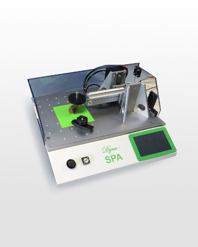 Le Dyna-SPA® est une machine pour les essais dynamiques haute vitesse : abrasion, rayures, adhérence par quadrillage, chocs, qui peut simuler tous les types d’abrasion, de rayure, d'adhérence des revêtements, et les essais aux chocs à dynamique importante avec une très bonne répétabilité, et ce avec le même instrument. Le Dyna-SPA® est une machine d’essais idéale pour les pièces plates ou courbes.