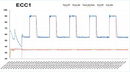 • La technologie brevetée permet la reproductibilité optimale des conditions climatiques durant les essais dans la chambre, et ce indépendamment des conditions ambiantes. Au total, 9 capteurs différents surveillent tous les paramètres pertinents des essais que sont la température, l'humidité, la circulation de l'air pendant la phase de séchage et la pureté de l'eau déminéralisée