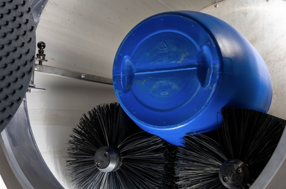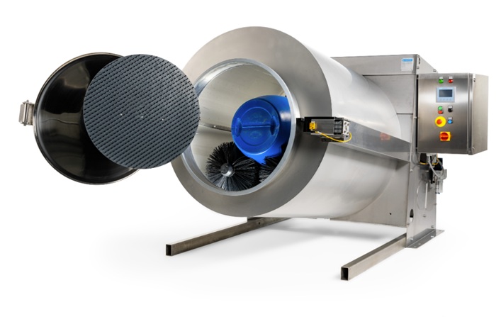 Notre laveuse de  fûts (peintures, encres, cosmétiques, etc.) à brosses rotatives conviennent  aux fûts à ouverture totale jusqu’à 220 litres (Ø mini 300 mm /  Ø maxi. 700 mm / Hauteur 950 mm).
