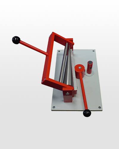 Le test est effectué en pliant le panneau-test revêtu autour de mandrins de différents diamètres jusqu’à ce que l’endommagement (fissures, cassures, décollement) apparaisse. Disponible pour panneaux de largeur 100 ou 70 mm.