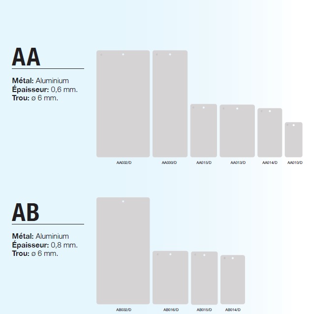 Nos panneaux d'essai d'application peintures en aluminium sont déclinés en trois alliages différents. ces Panneaux d'essai d'application peintures aluminium répondent aux caractéristiques mécaniques de tenue aux chocs et au pliage (ASTM D2794 – UNE 48 331) requises pour les essais de peintures et vernis. Les plaques AB014 et AD014 sont fabriquées conformément aux spécifications « QUALICOAT ». Une alternative prix à Q-Panel