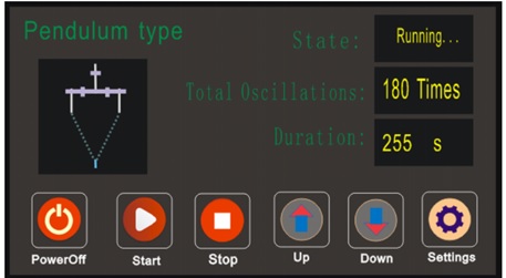 De plus l’instrument est équipé d'un écran tactile convivial avec affichage en temps réel du nombre d’oscillations, de la durée, et du type de pendule utilisé. Les résultats des essais peuvent être enregistrés et consulté à l'écran de l'appareil ultérieurement.