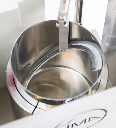 Pour garantir une dispersion et un mélange parfaits même en cas de substances très visqueuses et non fluides, un système de racle est souvent absolument indispensable. C’est en effet le seul moyen de racler le produit situé sur les parois internes de la cuve et de le remettre au centre de celle-ci. On est sûr alors que la totalité du produit est bien dispersée et mélangée.