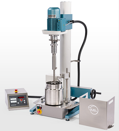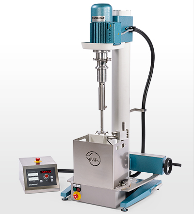 La manipulation est très facile : le système de racle ASC est simplement placé entre les pieds du Dispermat® et est serré avec le système de serrage à centrage automatique. Ensuite la cuve souhaitée est bloquée et le bras de racle est abaissé dans la cuve. Le bras de racle appuie sur la paroi interne de la cuve via un ressort de pression. Ce système garantit un processus complet de dispersion/mélange. Le bras de racle en forme demi lune assure un processus de mélange idéal en ramenant à chaque fois le produit vers le centre et l'outil de mélange ou de dispersion.
