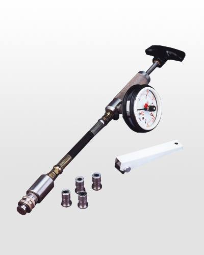Un plot en acier inoxydable réutilisable est collé sur la surface de test. Une fois la colle sèche, il suffit de faire tourner la poignée de l’instrument pour exercer la force d’arrachement nécessaire pour décoller le plot de la surface. La valeur de la force appliquée s’affiche sur le cadran analogique, de 0 à 25 MPa / 0-3500 PSI (0-250 bar).